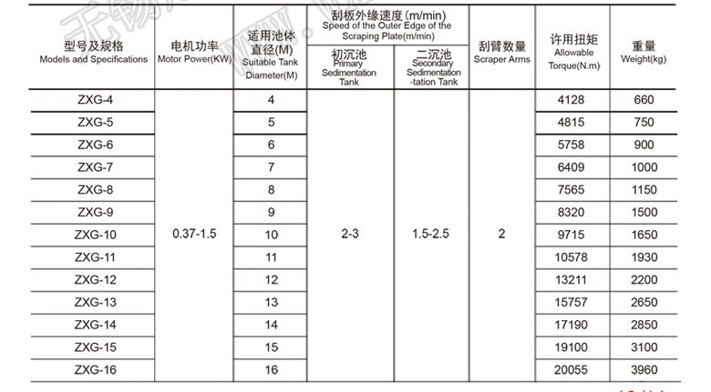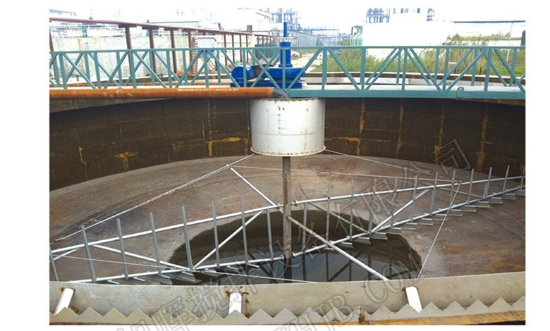 通過減速驅(qū)動(dòng)和懸掛式組件的傳動(dòng),由刮板將污泥刮集到中心集泥槽,依靠?jī)羲畨毫虮门懦龀赝狻2捎弥虚g進(jìn)水和排泥,周邊排水,保證水流均勻,利用液位差自吸式排泥配有浮渣刮集排除裝置和過載保護(hù)裝置。